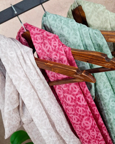 ناموجودشال حریر نرم پنبه ای دور دوخت مروارید ریز سیاه