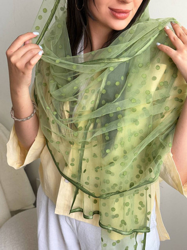 شال زنانه نخی برشکا سبز ماچا