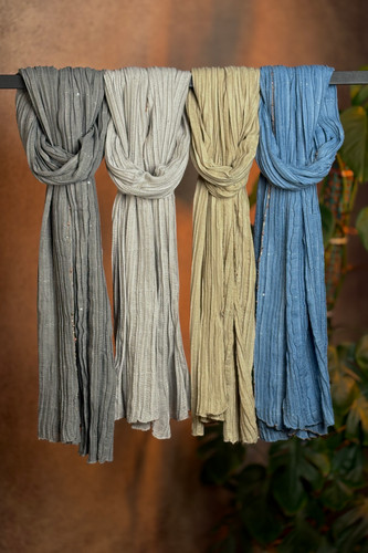 شال زنانه نخی پلیسه آبرنگی دور عدسی