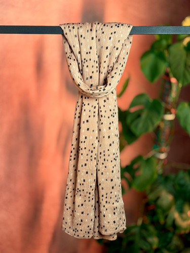 ناموجودشال زنانه نخی پلیسه طرحدار کرم روشن دورو پاییزه و زمستانه