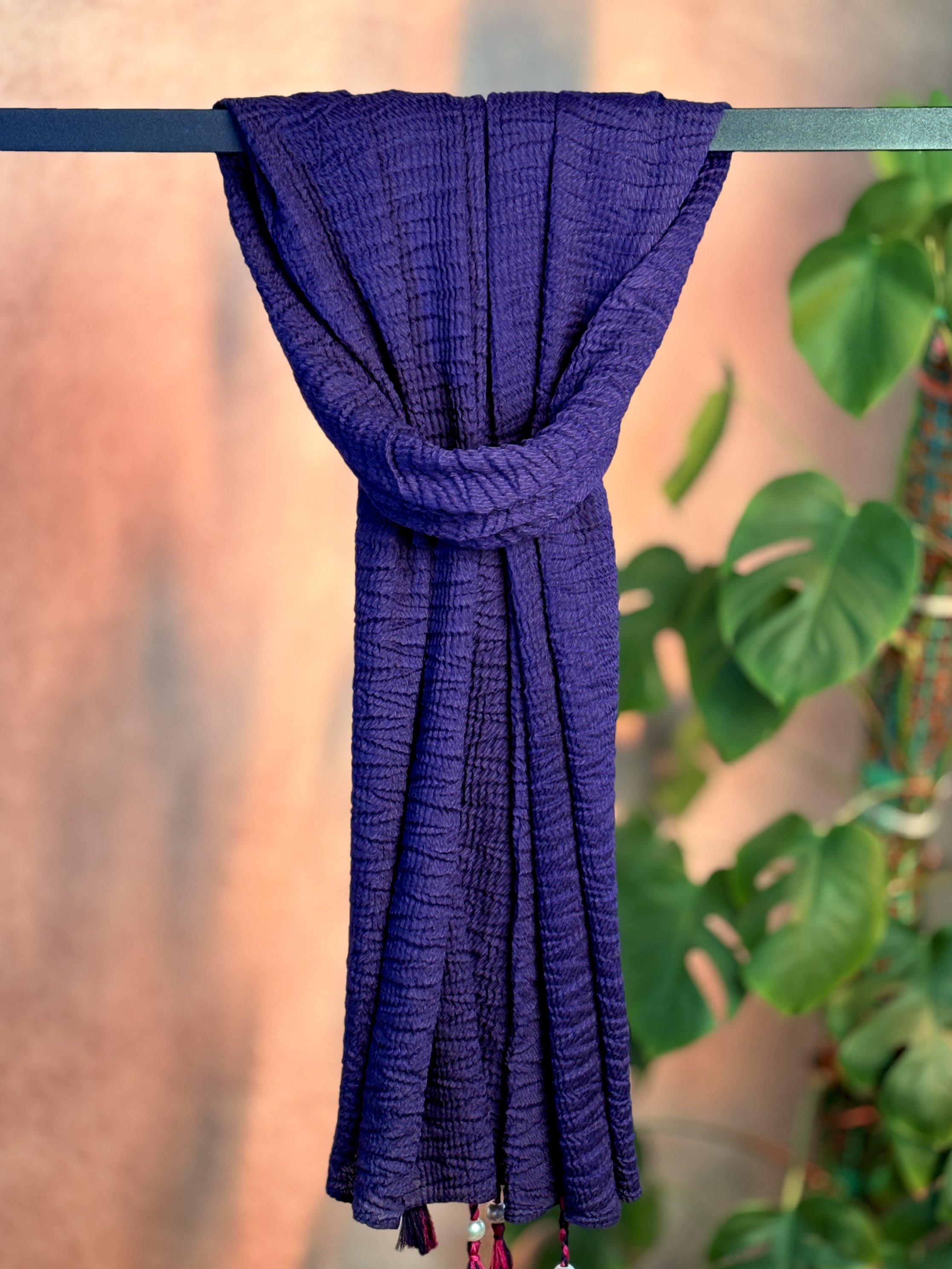 ناموجودشال زنانه نخی پلیسه برشکا سورمه ای