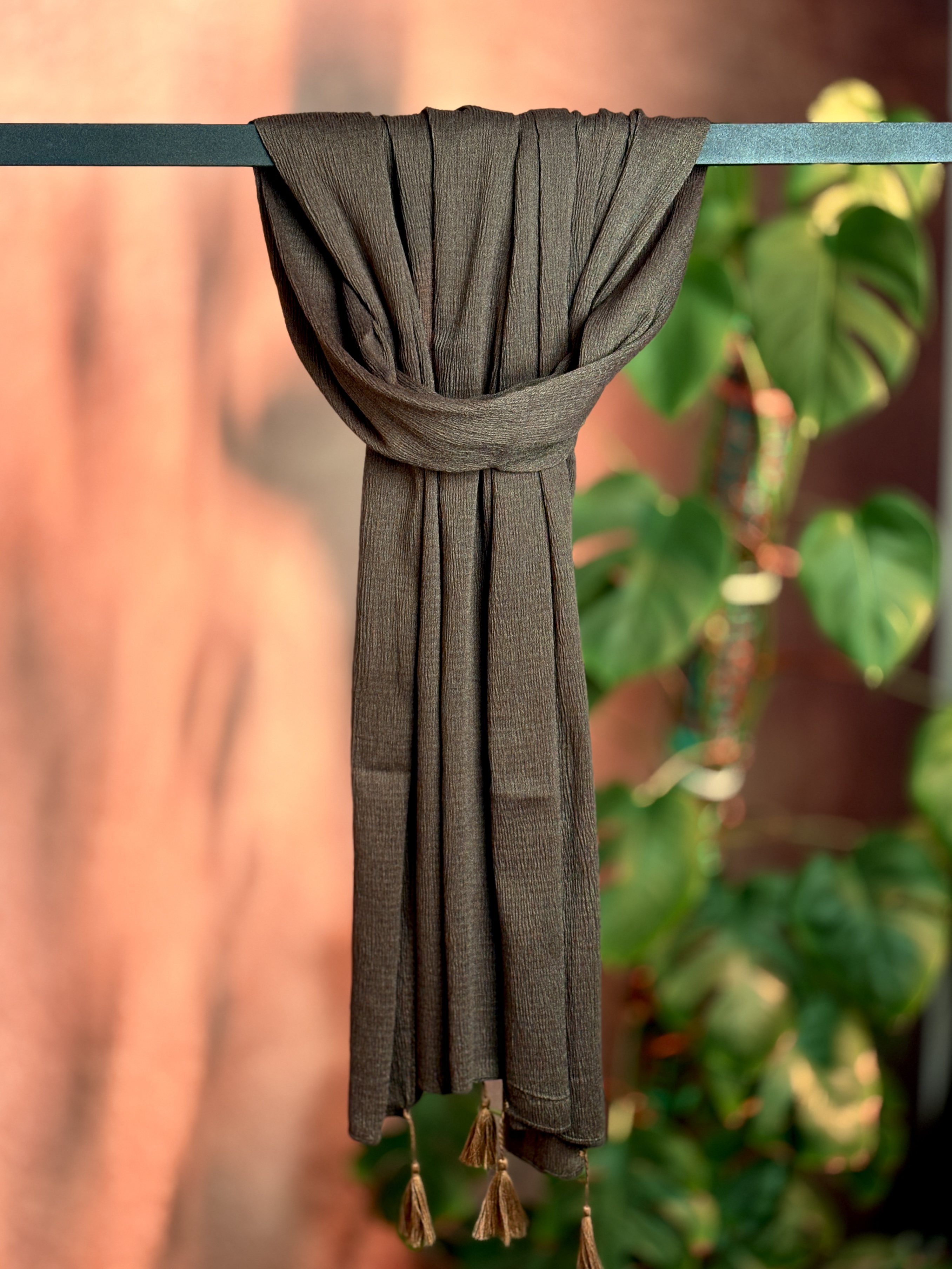 شال زنانه کنفی دور ریش دستک پولک دوزی