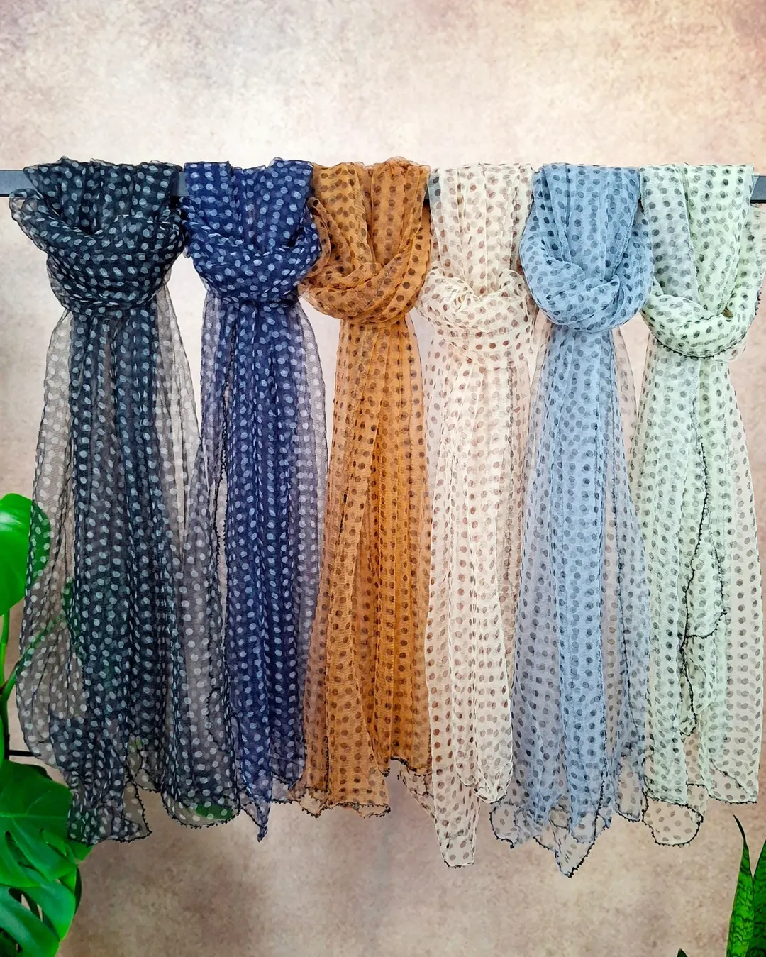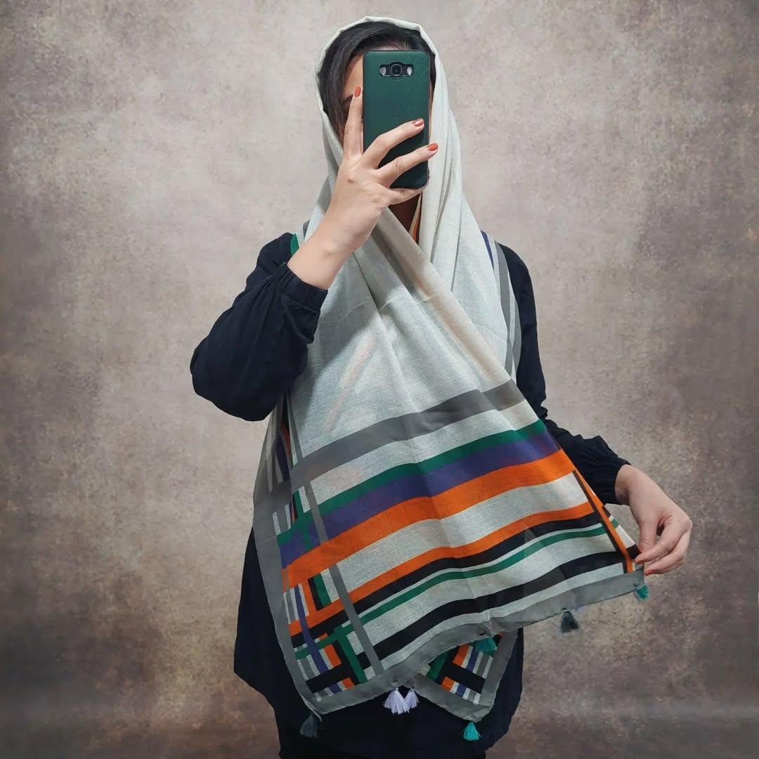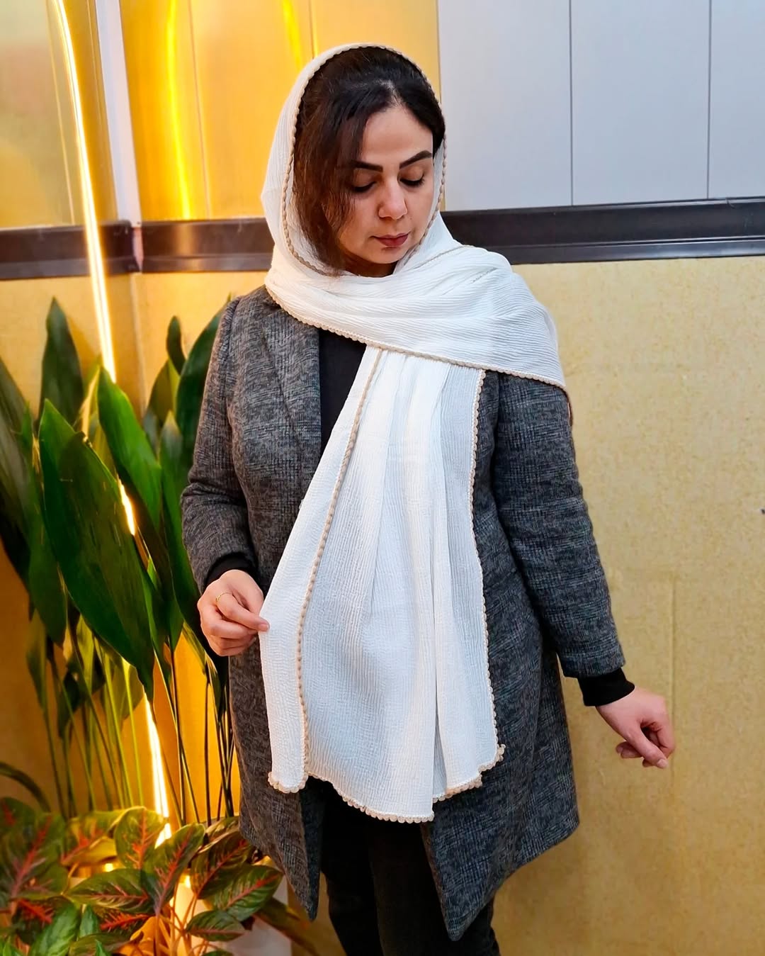 شال زنانه نخی پلیسه آبرنگی دور عدسی