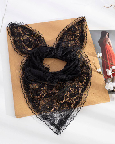 روسری سه گوش توری دور دانتل طرح دار مشکی قواره 110