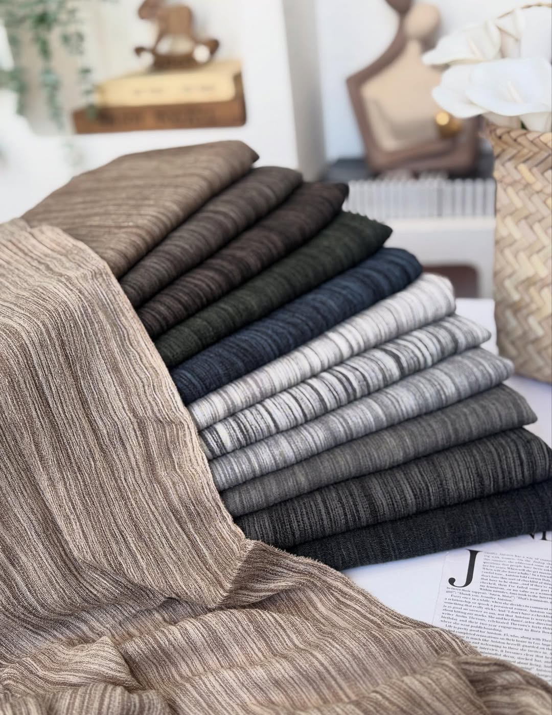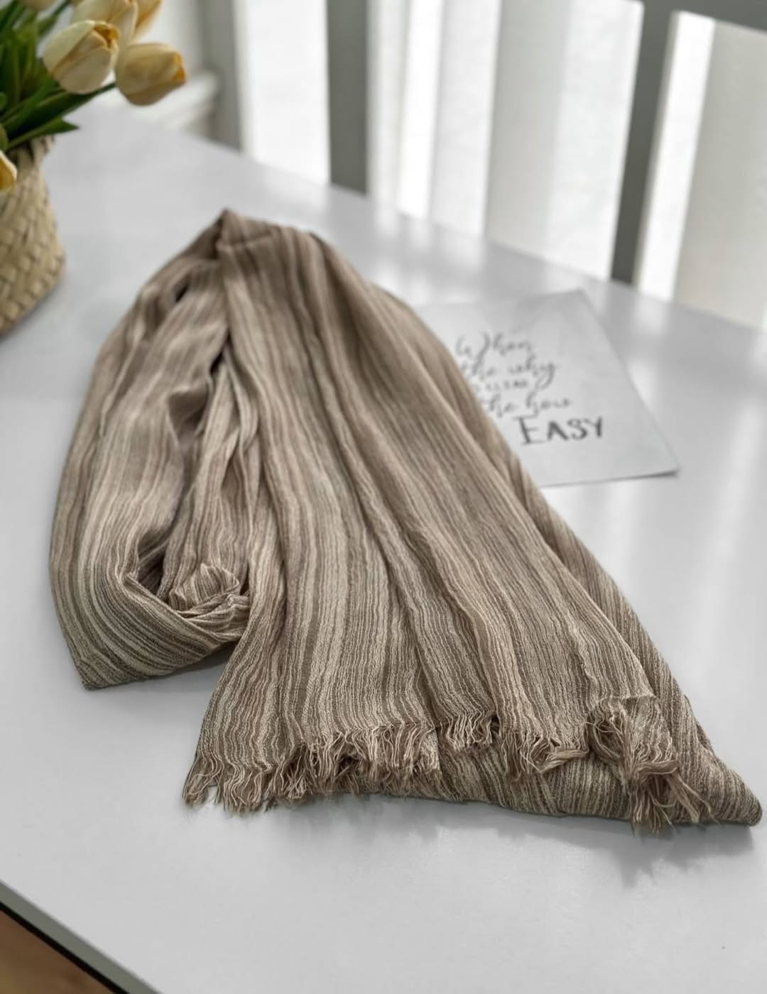 شال کنفی طرح راه راه دور ریش وارداتی