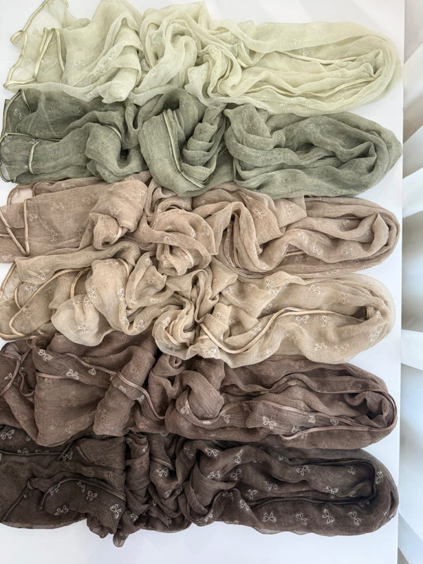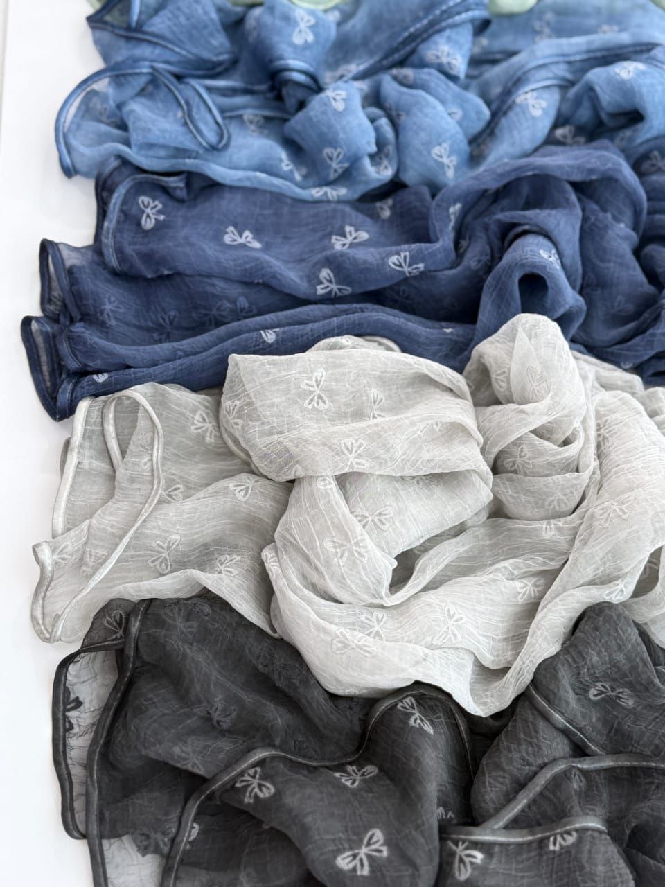 شال حریر شیشه ای طرح پاپیون دور گاندوزی