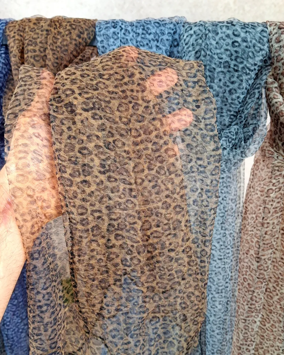 شال حریر نرم پنبه ای دور دوخت مروارید ریز سیاه