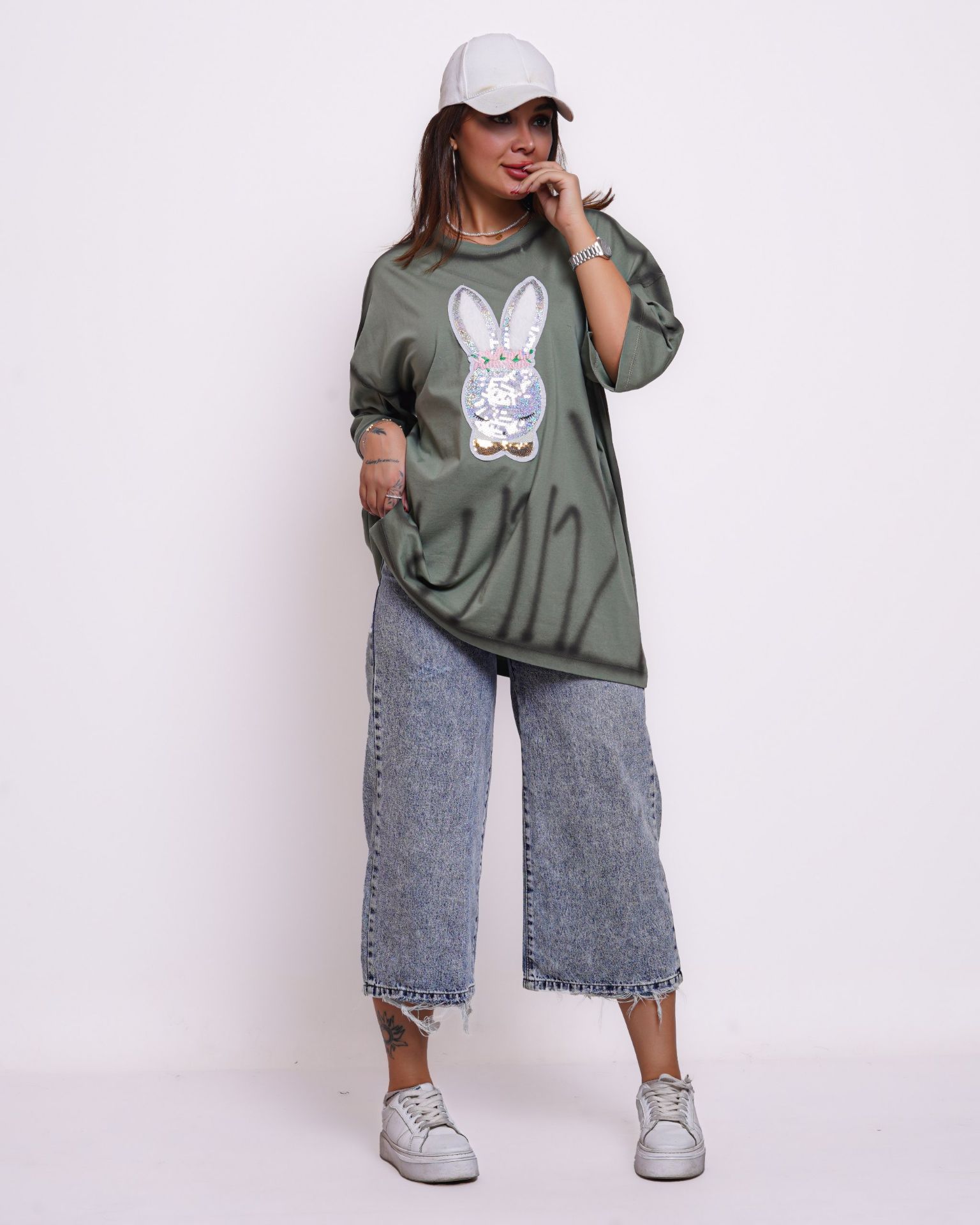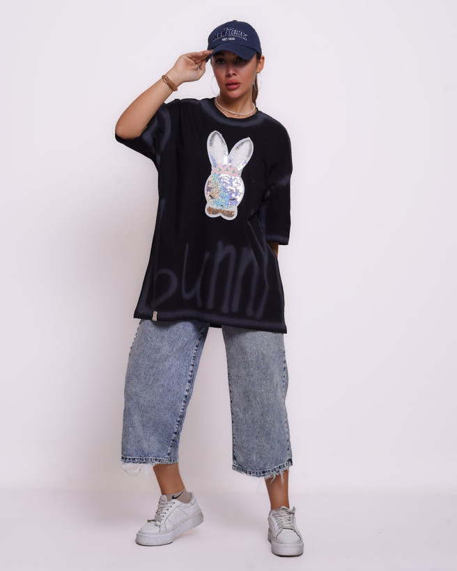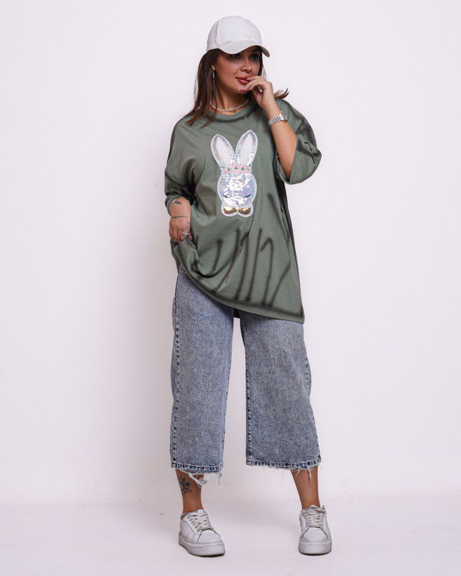 تیشرت لانگ جلو استیکر دار عرض سینه 60 قد 80