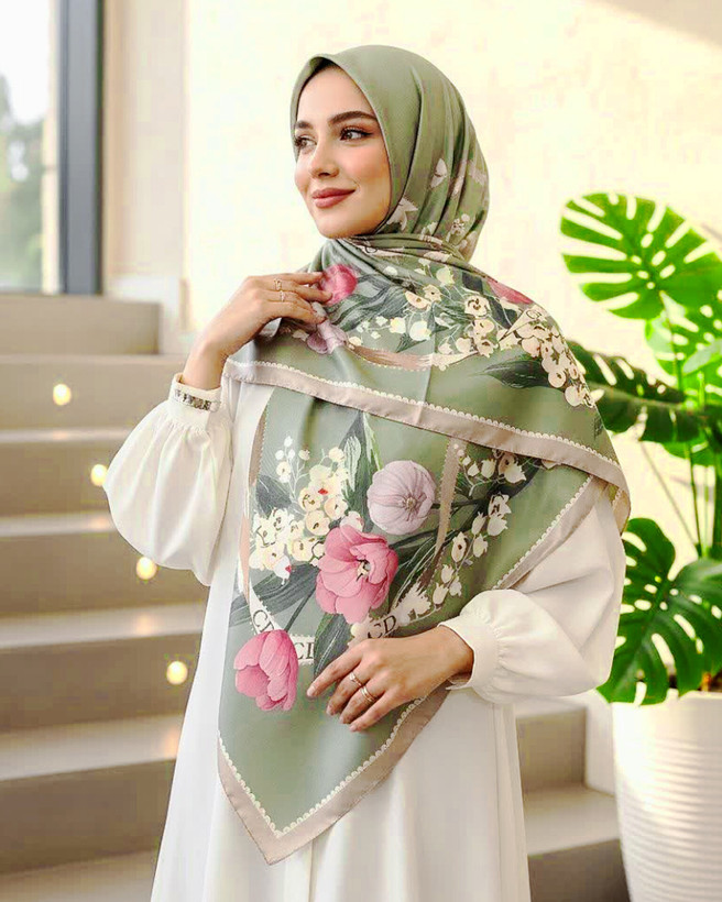 روسری ساتن ابریشم قواره بزرگ 140 سبز