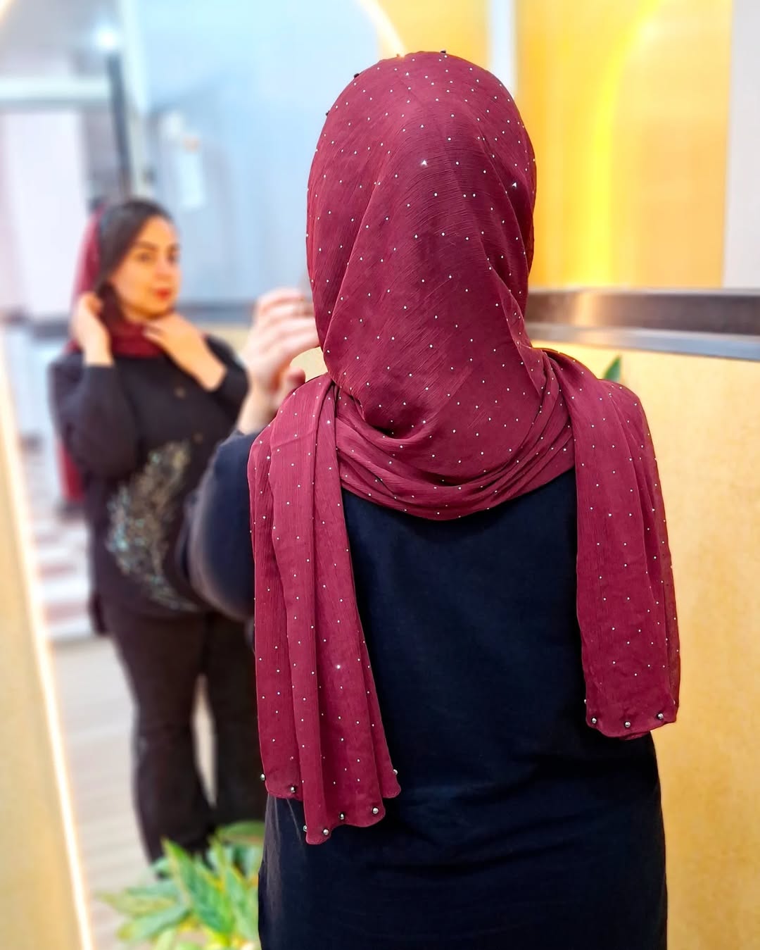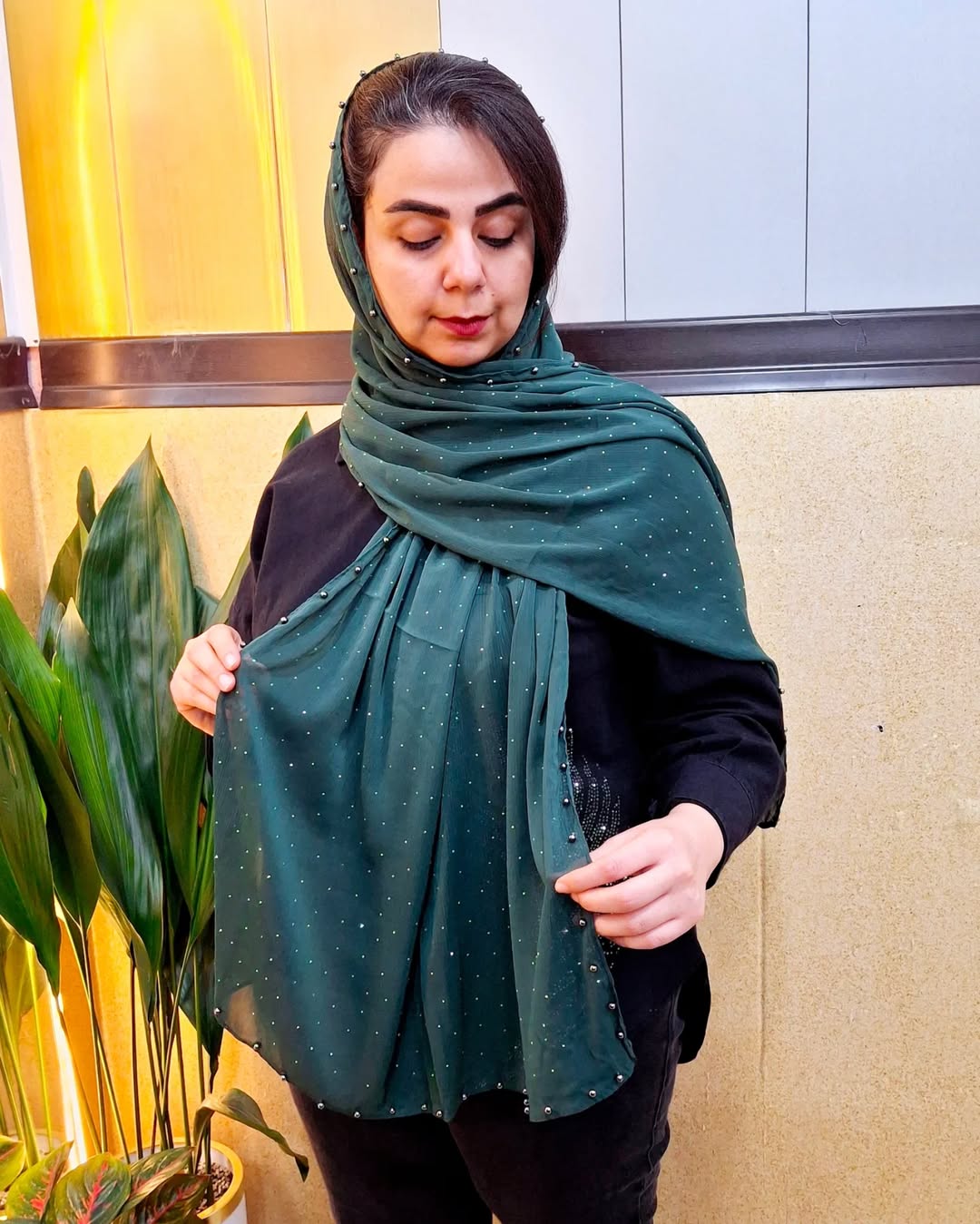 شال مجلسی نگینی با حاشیه مروارید دوزی