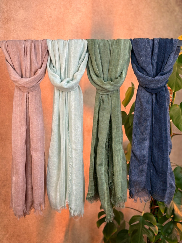 شال کنفی چهارفصل طرح راه راه تیره روشن