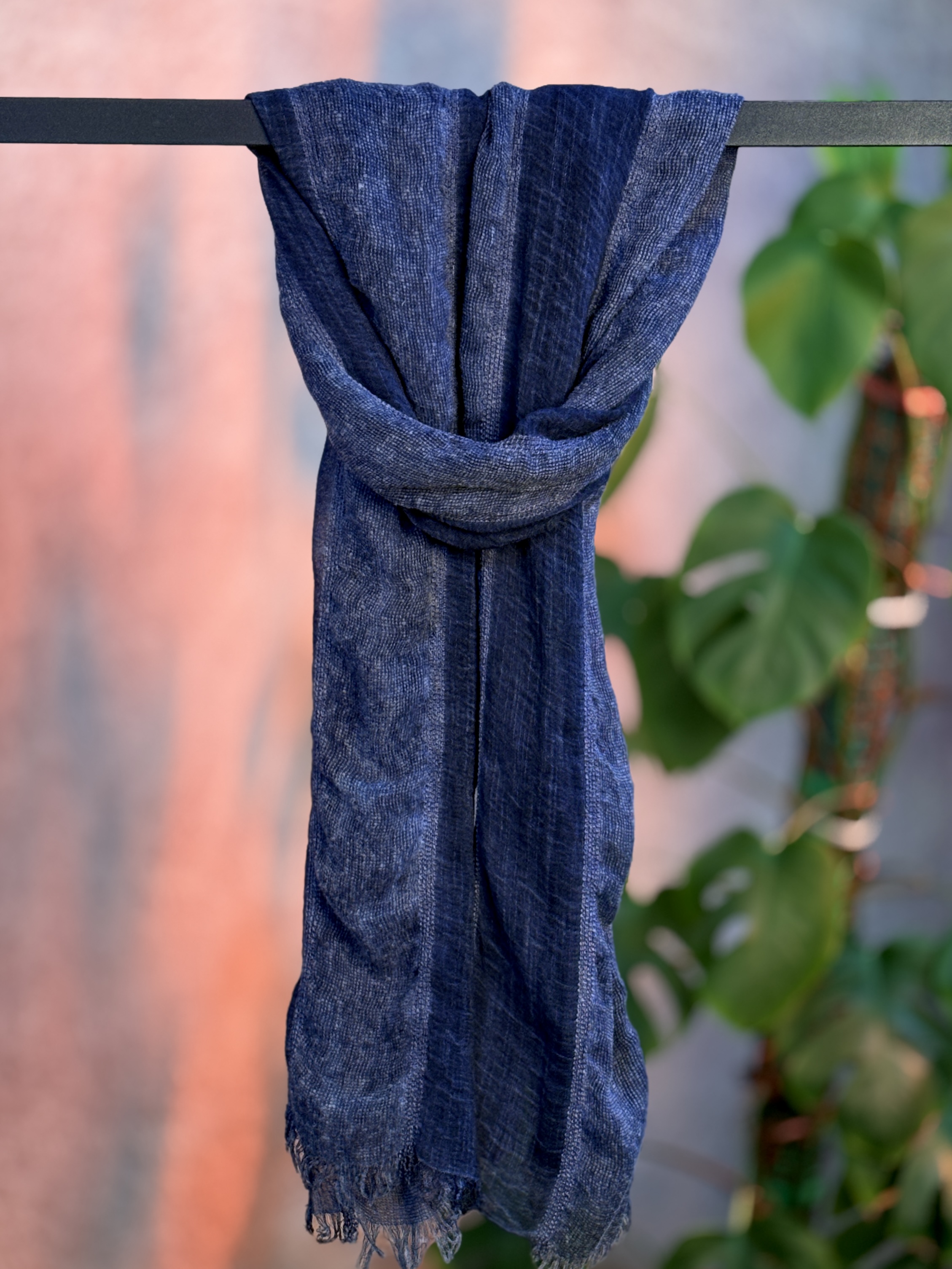 شال کنفی چهارفصل طرح راه راه تیره روشن