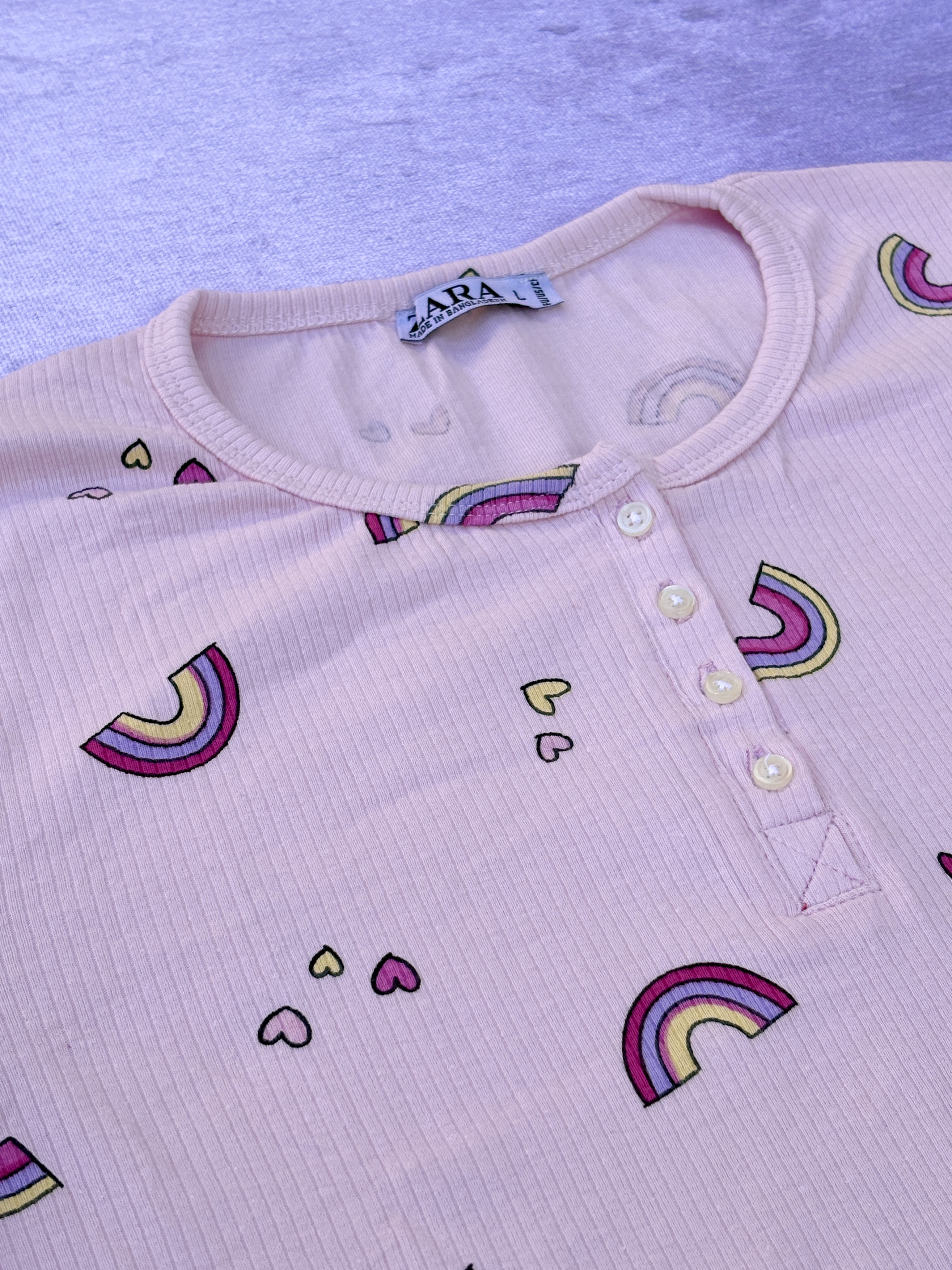 تیشرت زنانه کبریتی گلبهی رنگ با طرح رنگین کمان
