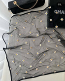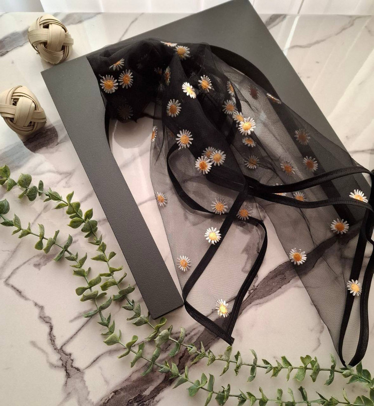 مینی اسکارف توری دور گاندوزی طرح گل بابونه قواره 75 کد 1001