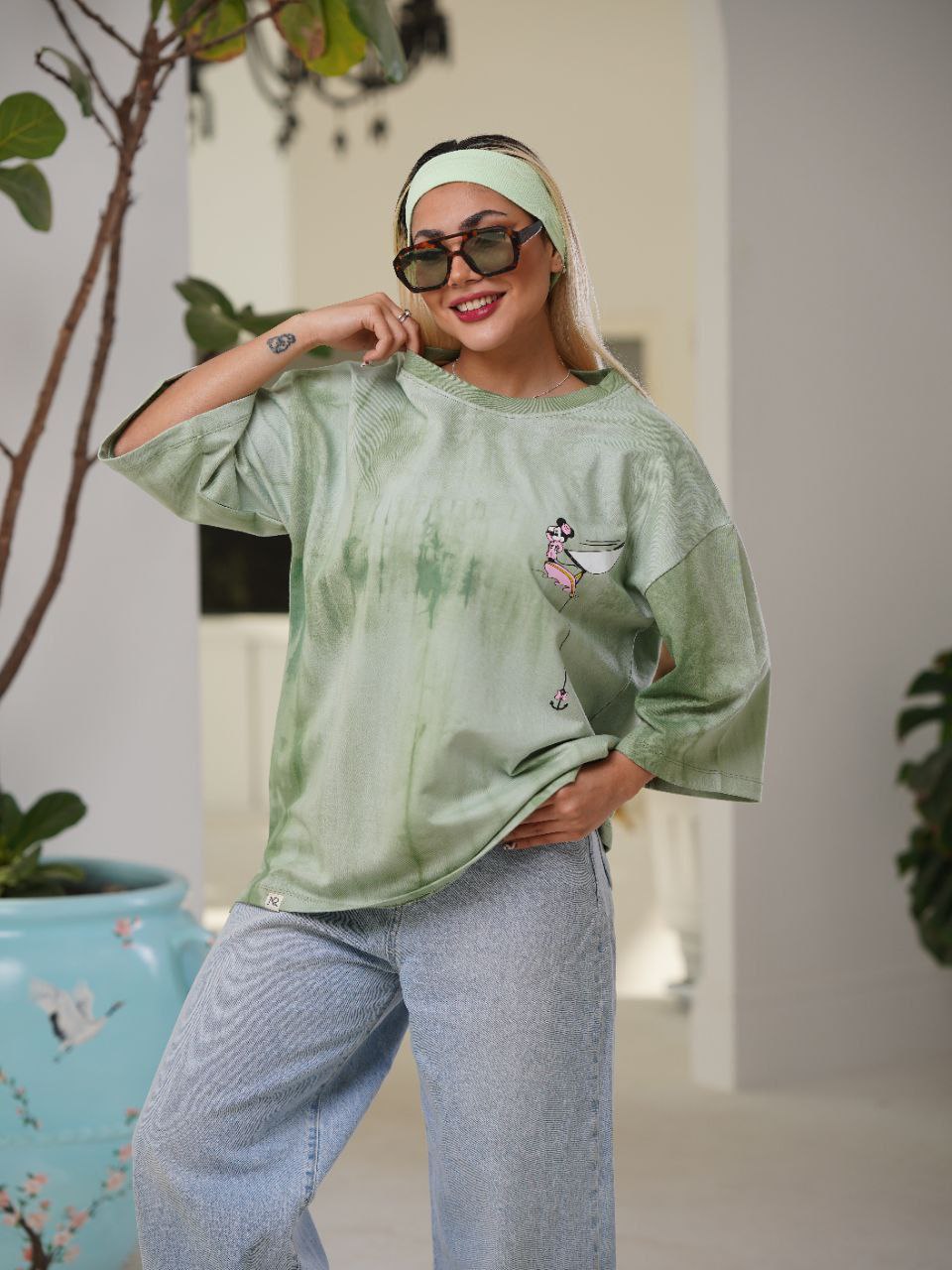 تیشرت زنانه آبرنگی در پنج رنگ سبز ، صورتی ، طوسی ، آبی و آبی آسمانی